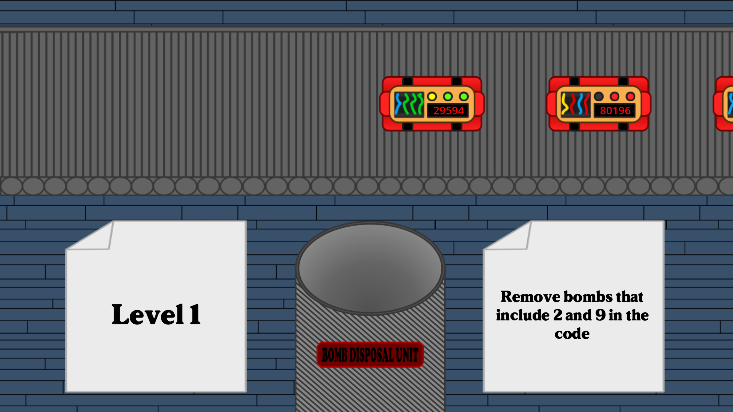 Sort out defective bombs as an employee in a bomb factory! Made in a week for the Queble game jam. I ran out of time to add audio :(.